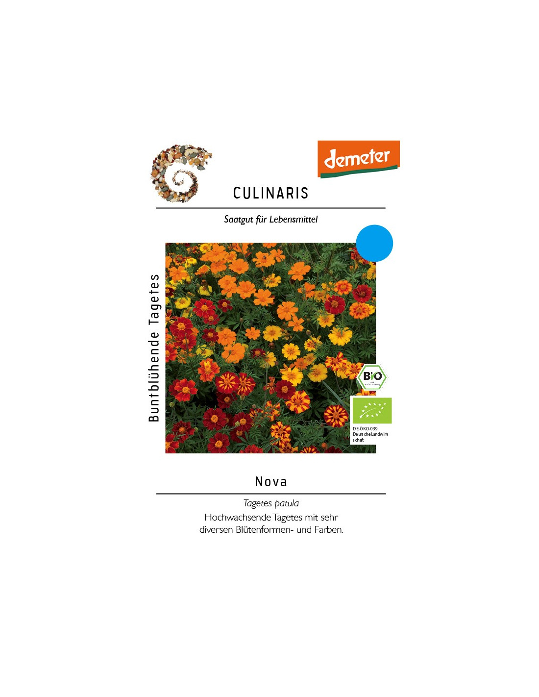 Niedrige bis halbhohe Tagetes mit sehr langer Blühzeit, bei anhaltend hoher Attraktivität für Mensch und Insekt (Optik und Duft). Kolibri entwickelt sich zu Saisonbeginn recht schnell und bildet üppiges grünes Laub, wodurch der Boden schnell bedeckt wird. Die Blüten variieren von hellgelb bis dunkelrot, mit diversen Farbverläufen auch innerhalb der Blüten. Durch den kompakten Wuchs ist die Sorte auch gut als Unterwuchs bzw. für die Mischkultur insbesondere mit nematodenanfälligen Kulturen und selbstverständlich als Kübelpflanze geeignet.