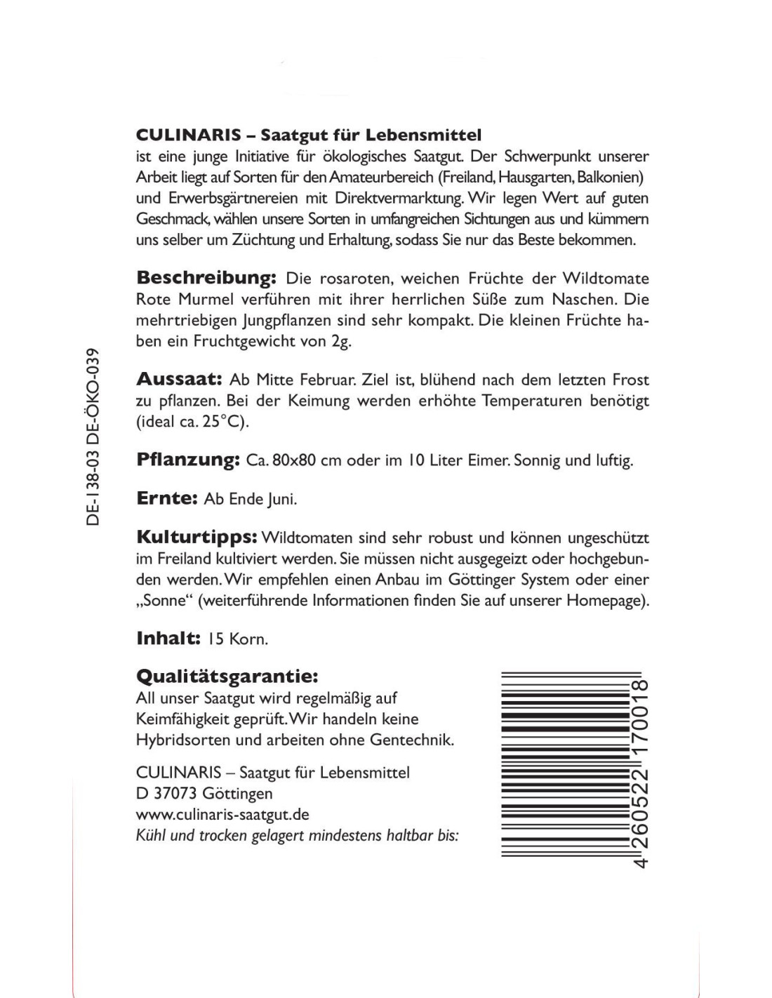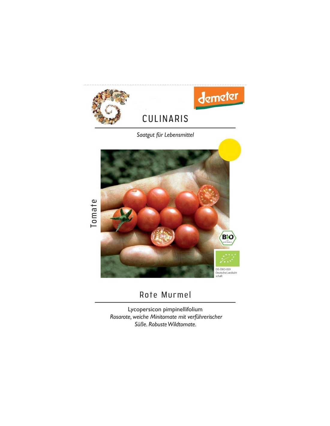 Die rosaroten, weichen Früchte der Wildtomate Rote Murmel haben eine herrliche Süße und einen üppigen Fruchtbehang. Mit einem Fruchtgewicht von 2 g verführen die kleinen Früchte zum Naschen. Die mehrtriebigen Jungpflanzen sind sehr kompakt. Wildtomaten brauchen Platz, um sich entfalten zu können. Am schönsten wachsen sie am Zaun, neben Mauern oder an Wegen, wo sie frei ranken können. Sehr hilfreich sind Stützen aus Bambus, die auf kreative Art und Weise angeordnet werden können. Die Tomate muss nicht ausgegeizt oder hochgebunden werden. Wildtomaten brauchen keine reichliche Düngung, bevorzugen aber wie alle Tomaten einen humosen, tiefgründigen Boden.