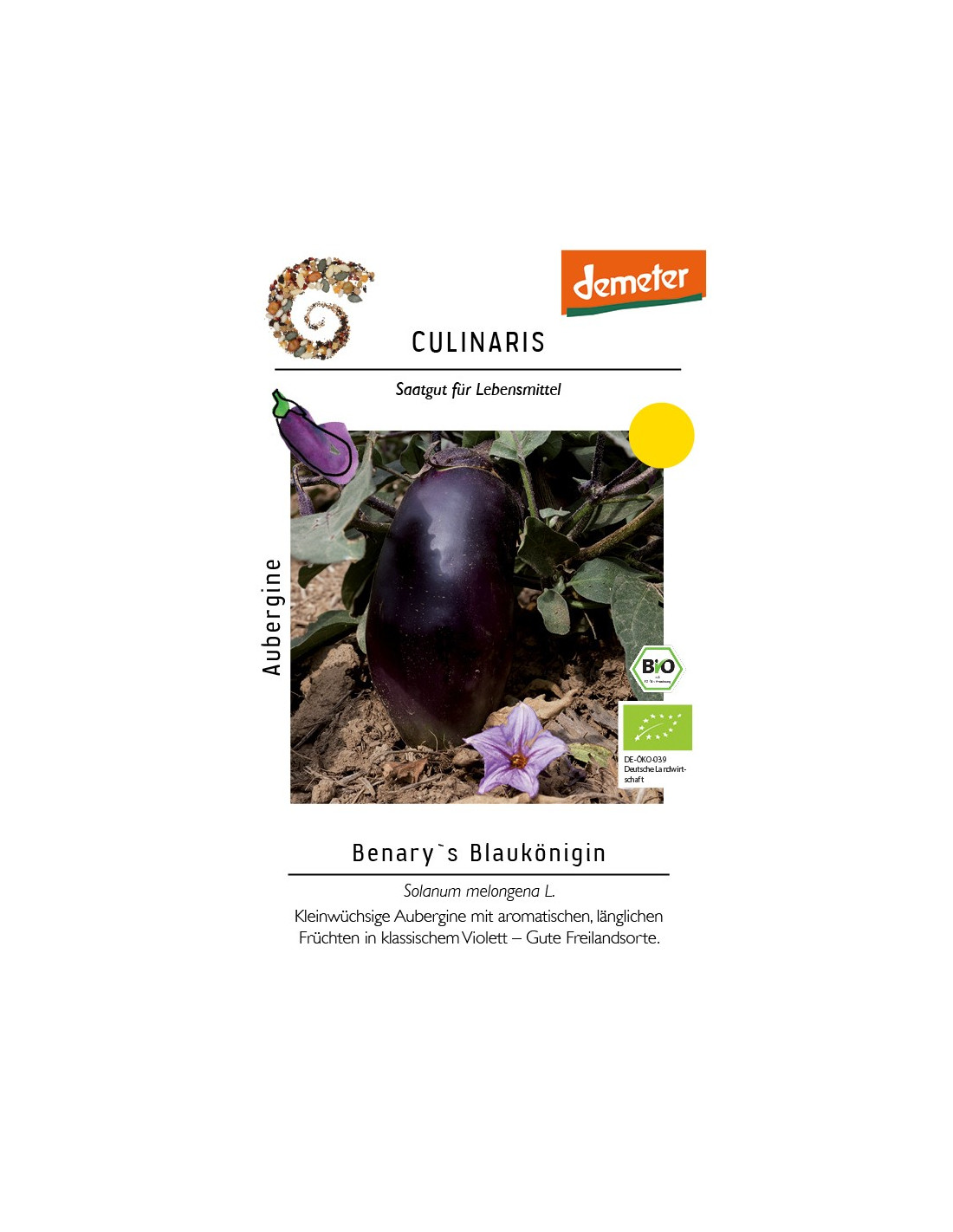 Die Blaukönigin ist eine der frühesten Auberginensorten überhaupt und überrascht schon im Juli mit üppiger und anhaltender Ernte. Die Sorte ist hervorragend für den Freilandanbau geeignet, kann aber ebenfalls im Kübel und auf dem Balkon gezogen werden. Die kompakte, eher kleinwüchsige Sorte (Wuchshöhen um 60 cm) bringt sogar außerhalb der Weinbaugebiete zuverlässige Erträge und überzeugt durch ihre mittelgroßen (etwa 150 g) violetten Früchte und eine gute Pflanzengesundheit. Der Geschmack ist erfreulich intensiv, aber nicht bitter. Die Früchte können wunderbar gekocht und gebraten werden. Insgesamt ist die Sorte sehr anspruchslos, benötigt keinerlei Stützhilfe oder intensive Düngung und ist daher hervorragend für den Hausgarten geeignet.
