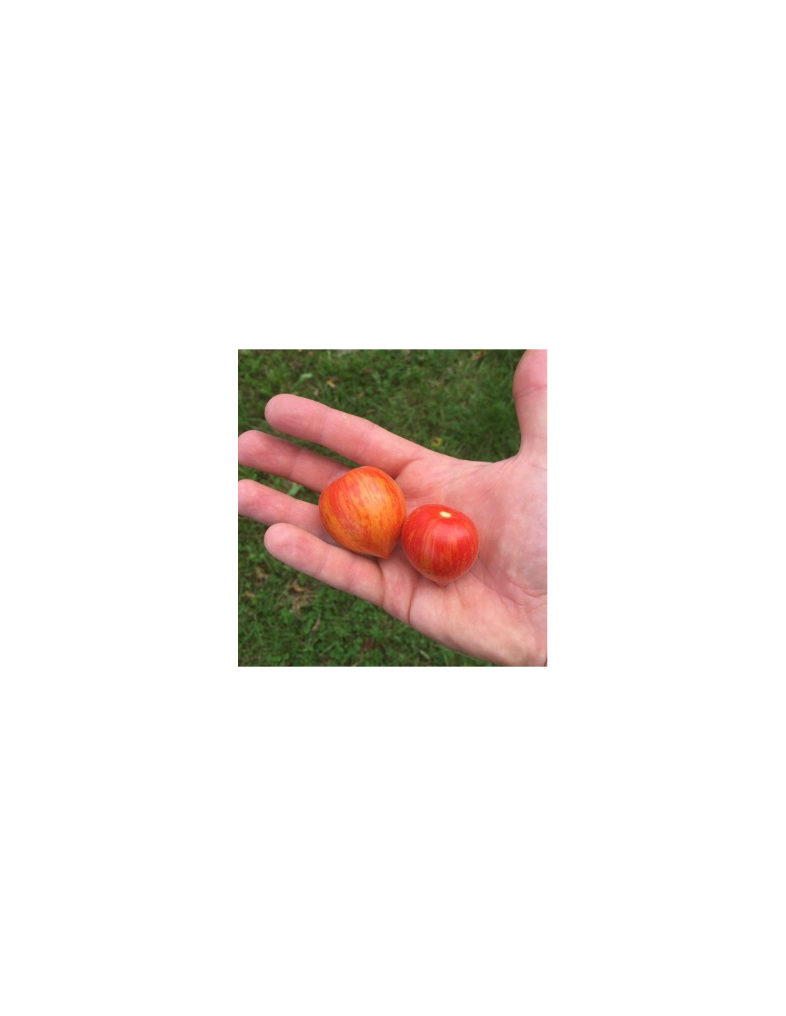 Auffällige, würzig-fruchtige, goldgestreifte Tomate mit graugrünen, behaarten Blättern.