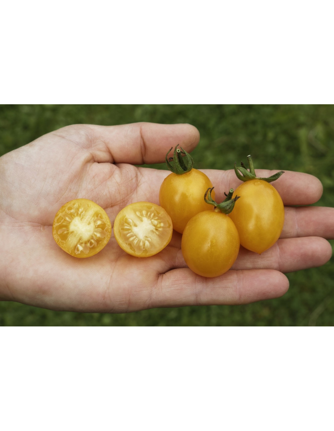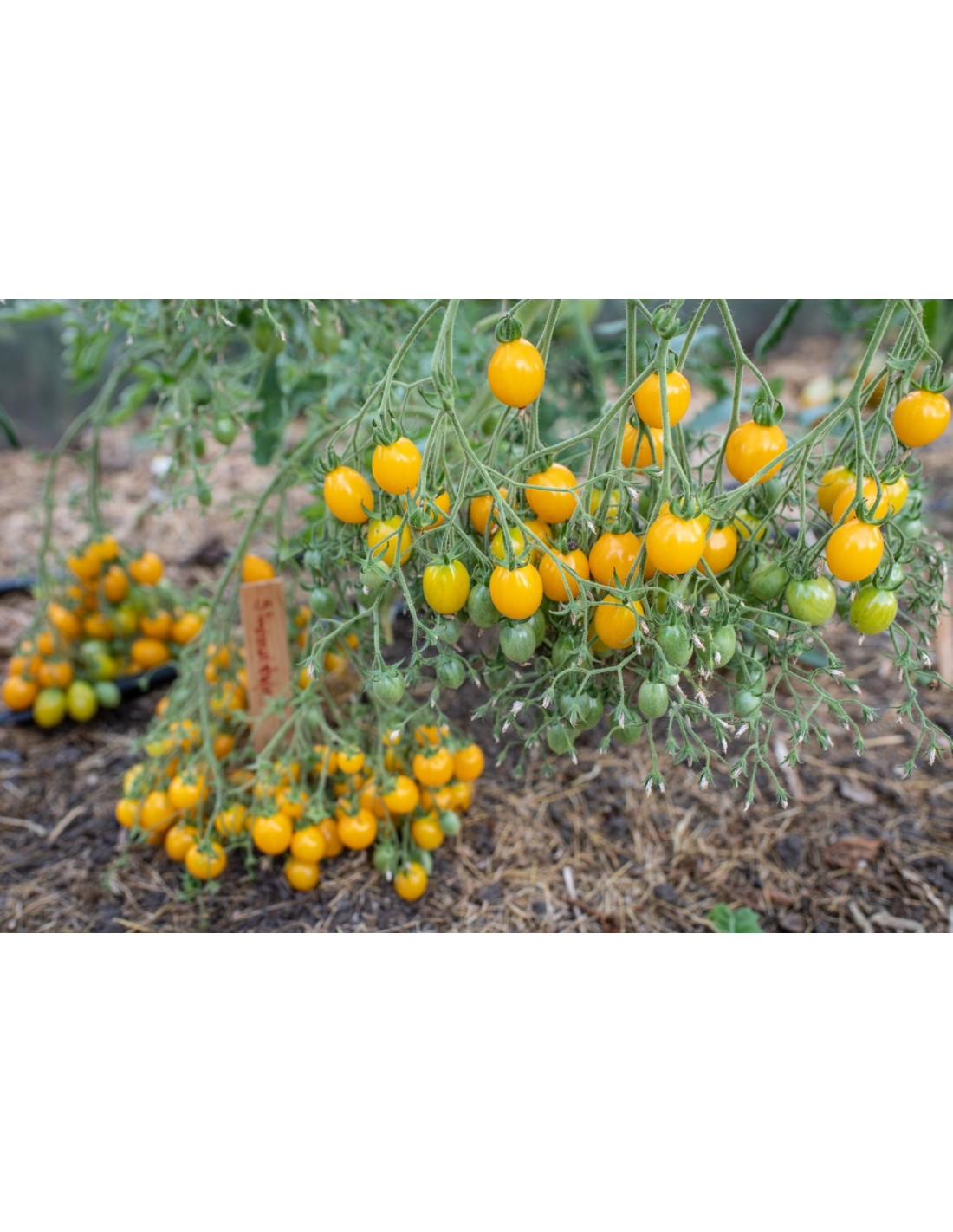 Gelbe Naschtomate an fächerartig verzweigten Rispen und mit harmonischem Süße-Säure-Verhältnis.
