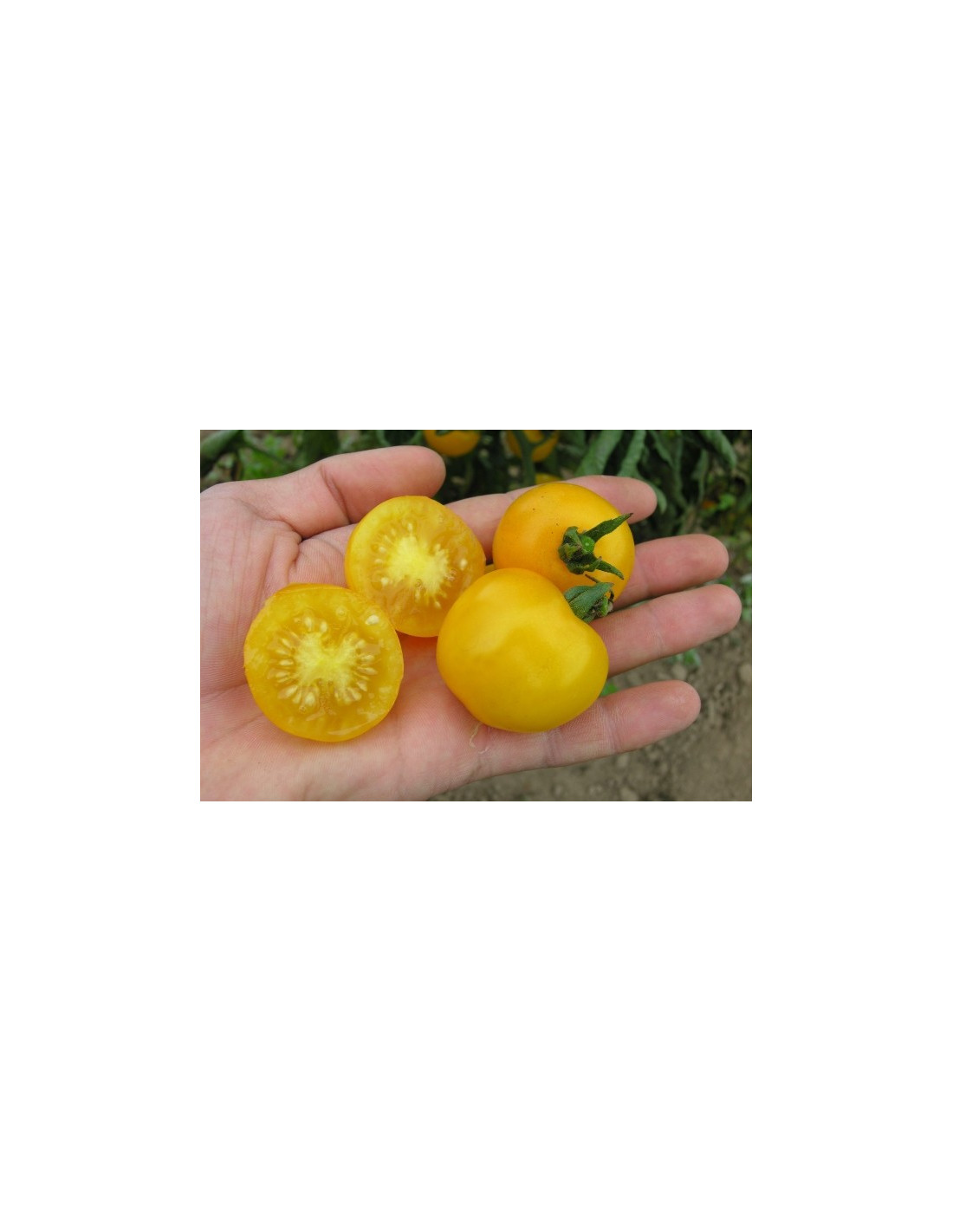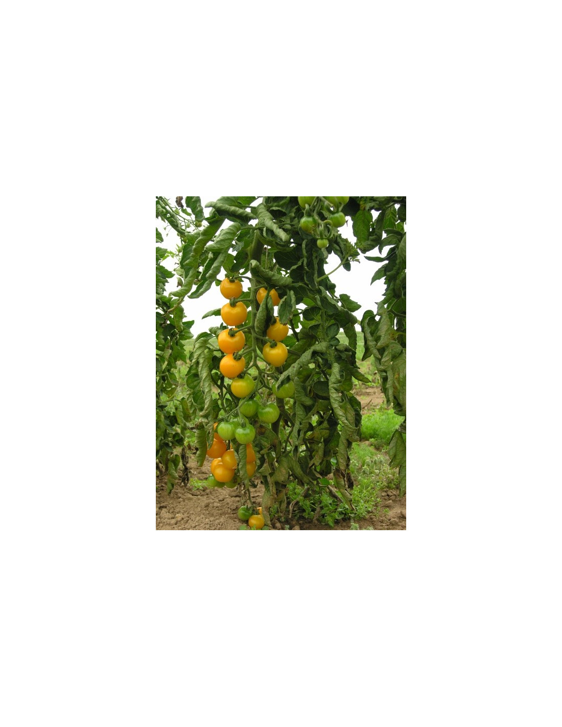 Goldgelbe, saftige und fruchtige Cocktailtomate für den Freilandanbau. Platzfest und sehr frühreif.