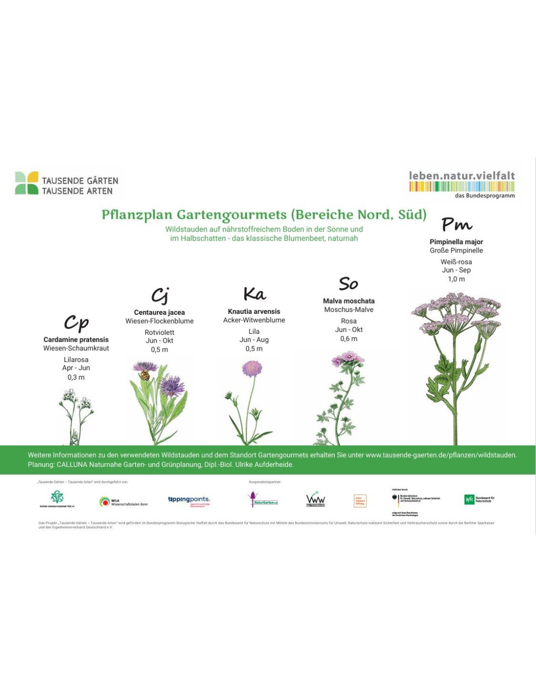 Sollte eine Pflanze aus dem Pflanzplan nicht lieferbar sein, wird sie durch eine andere Pflanze aus dem Sortiment der Gartengourmets ersetz.