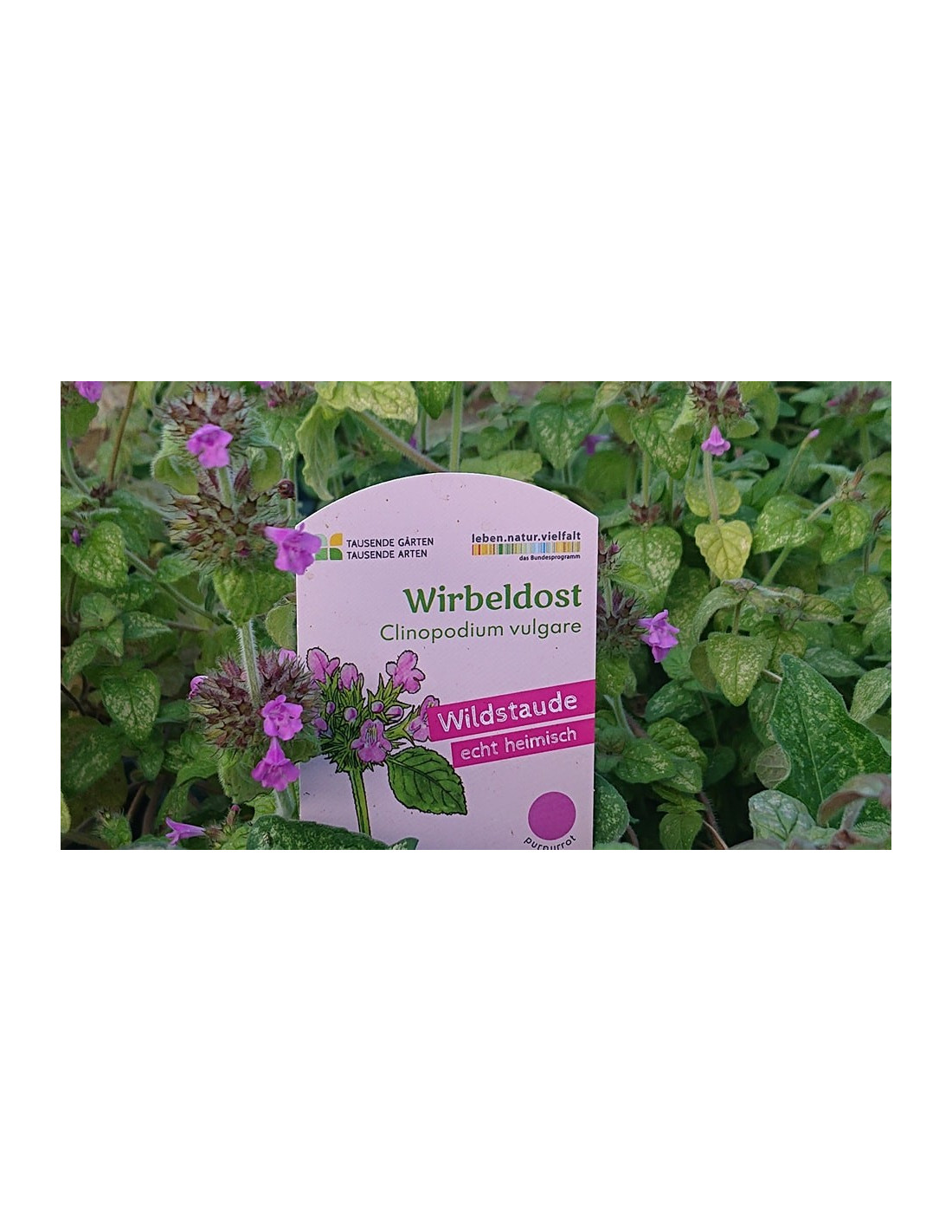 Der Wirbeldost (Clinopodium vulgare) ist eine sommergrüne Staude mit einem krautigen Wuchs und grünen, eiförmigen Blättern. Von Juli bis Oktober bildet er halbkugelige Scheinquirle in einem schönen Pinkton und ist damit eine ausgezeichnete Bienen- und Schmetterlingspflanze. 36 Wildbienenarten von denen sogar 2 spezialisiert sind und 3 Schmetterlingsarten wurden bereits am Wirbeldost gesichtet. Die spezialisten sind die frühe Ziest-Schlürfbiene und die Wald-Pelzbiene. Der Wirbeldost gedeiht am besten auf humosen, sandigen bis lehmigen, frischen Böden und ist ideal für Gärten und Parks, Schutt- und Kiesplätze, Waldränder und Gebüsche.